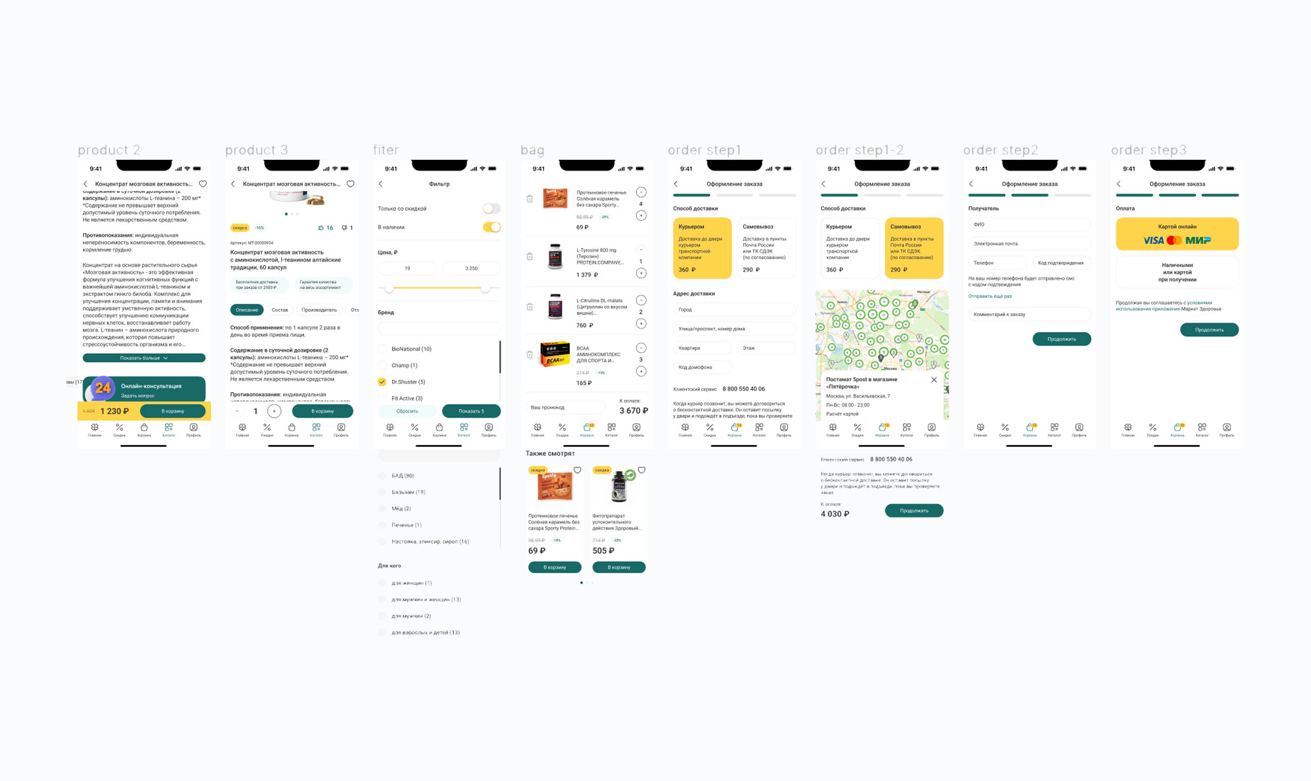 Для проекта было разработано более 20 экранов для мобильного приложения.