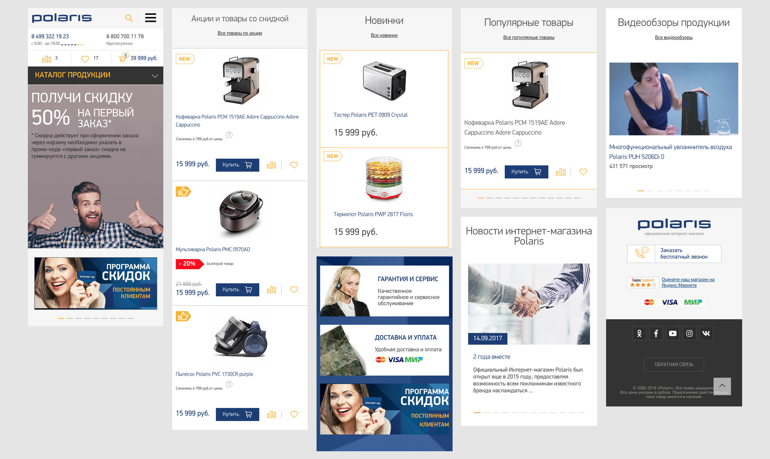Перед нами стояла большая и трудоемкая задача — редизайн корпоративного сайта, а затем полная реорганизация брендового Интернет-магазина Polaris с последующей настройкой сквозной аналитики, SEO и контекстной рекламы.