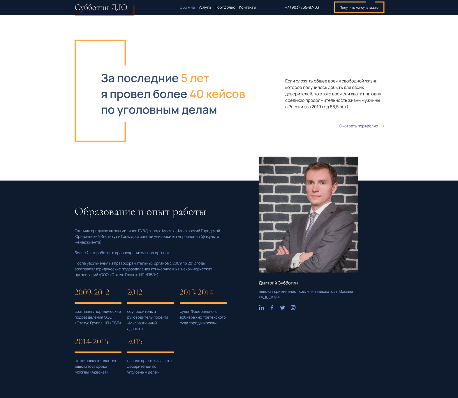 В настоящий момент сайт адвоката Дмитрия Субботина доработан и обновлен. Нам удалось разработать ресурс, который в полной мере отражает индивидуальность заказчика, создает верный образ и атмосферу, является частью имиджа специалиста.