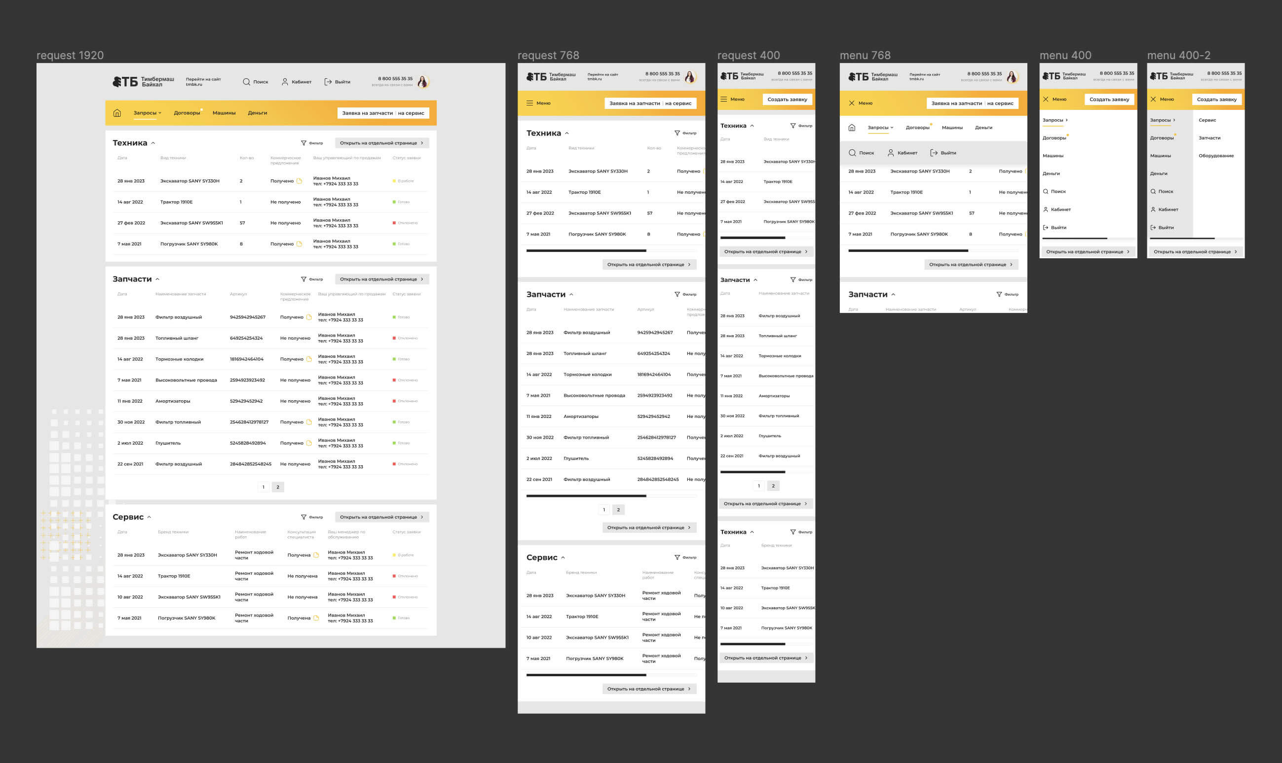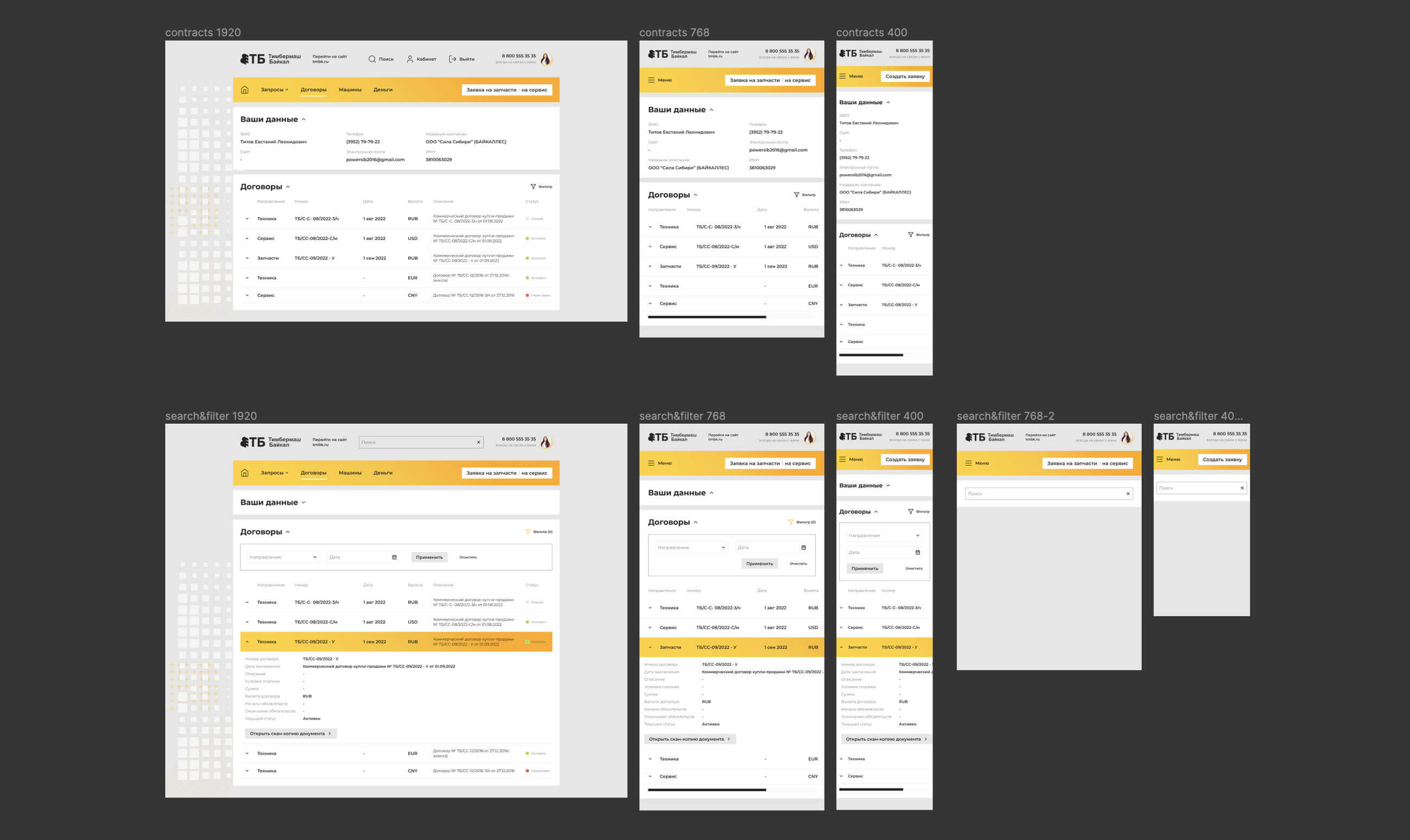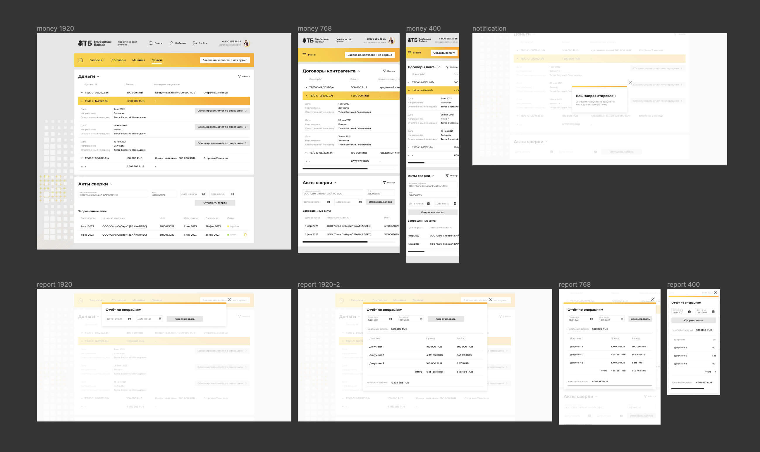 Приглашаем посмотреть страницы дизайна личного кабинета и их адаптацию для мобильных устройств.